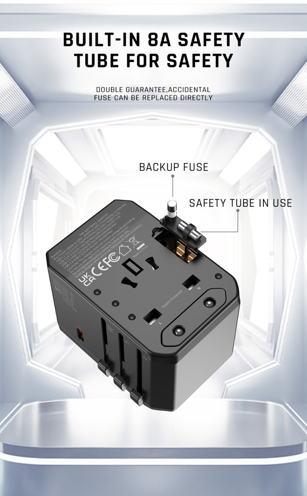 • Világutazó adapter. Minden egyben: AU, EU, UK, US csatlakozóaljzat.