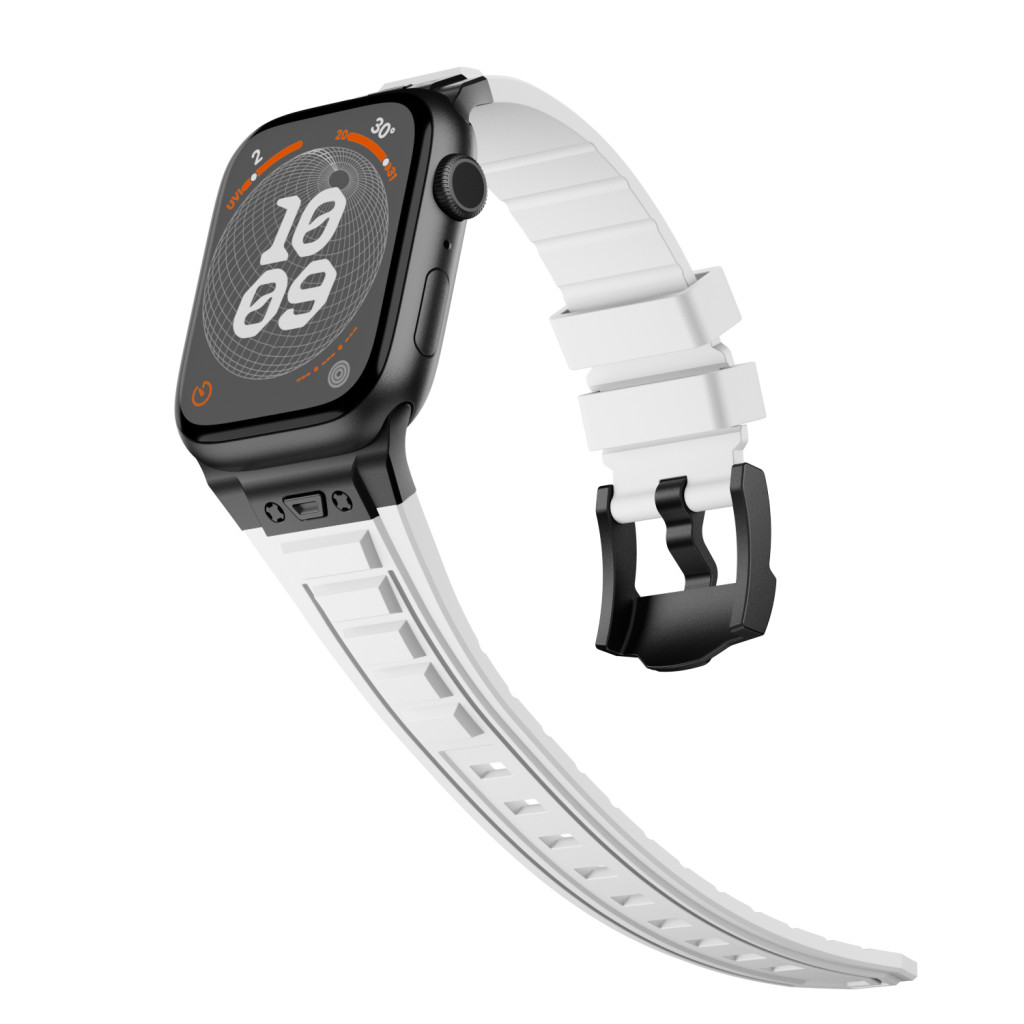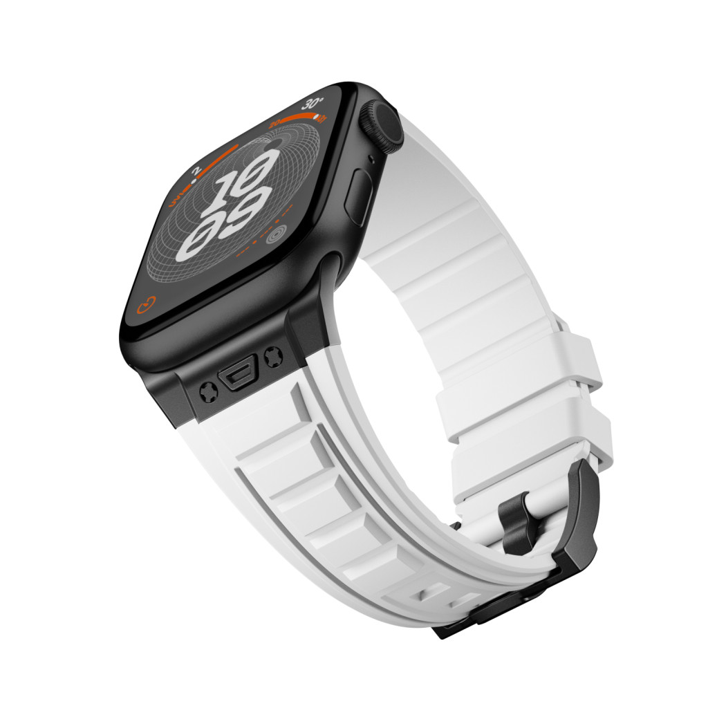 Apple Watch fehér explorer szíj fekete csatlakozóval 42/44/45/49 mm (Series 1-9, SE, Ultra) és 46 mm (Series 10/11)