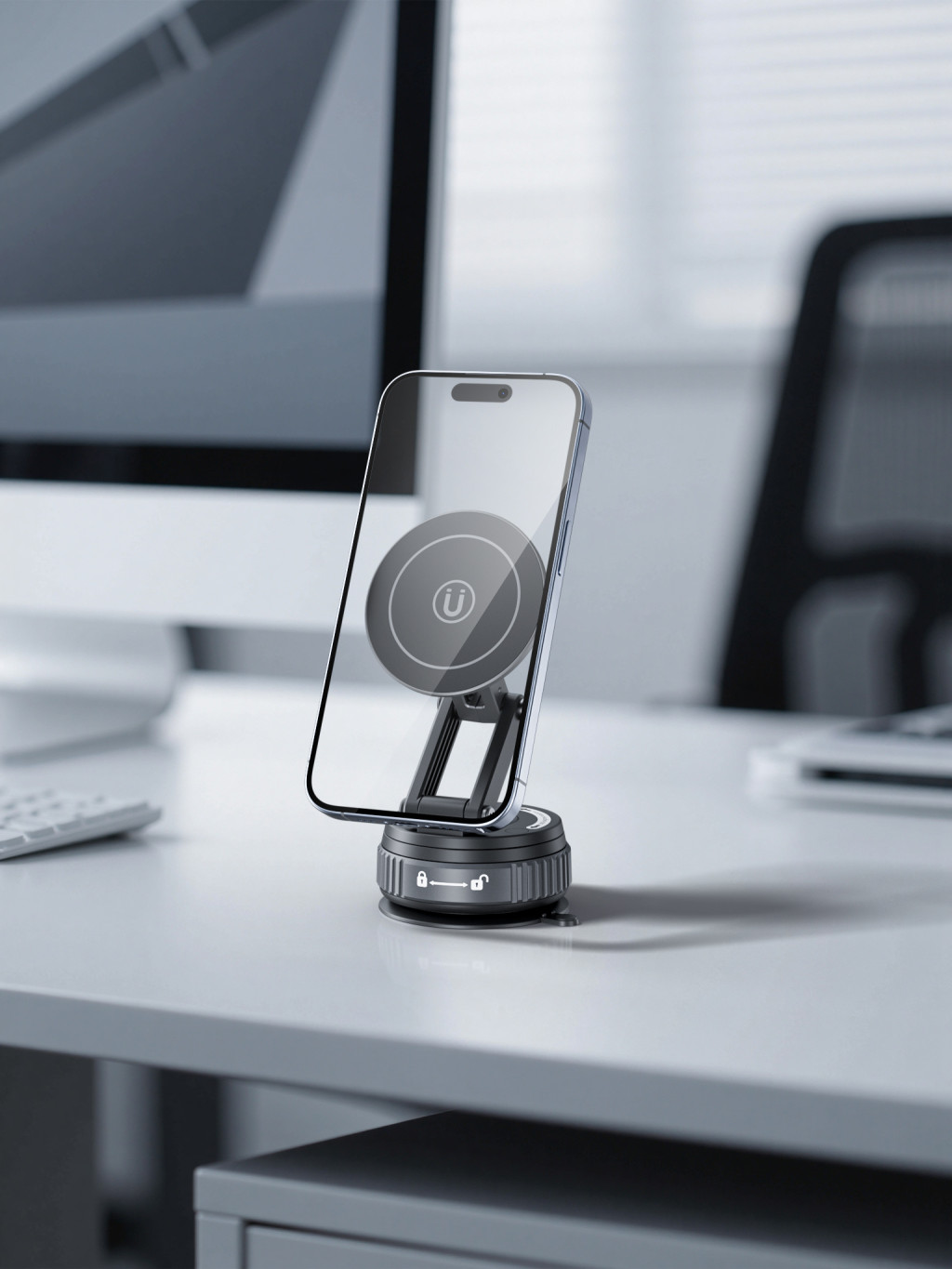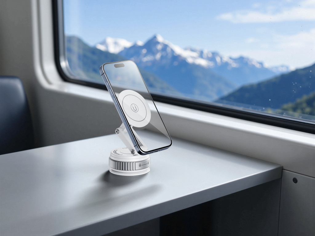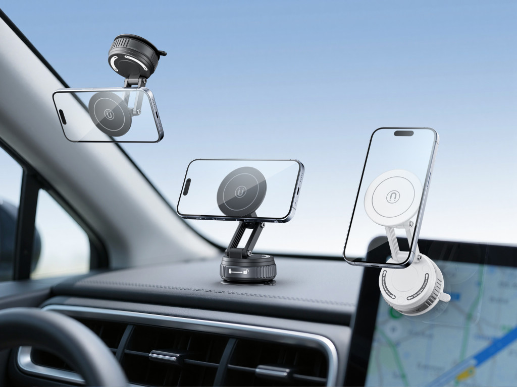 • Erős tapadókorongos rögzítés – biztonságosan megtapad sík felületeken, legyen az műszerfal, asztal vagy üveg -megfelelő tapadás érdekében a rögzítési felületet használat előtt javasolt portól, zsírtól és szennyeződésektől megtisztítani.