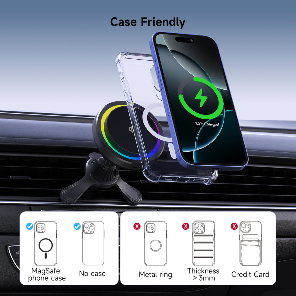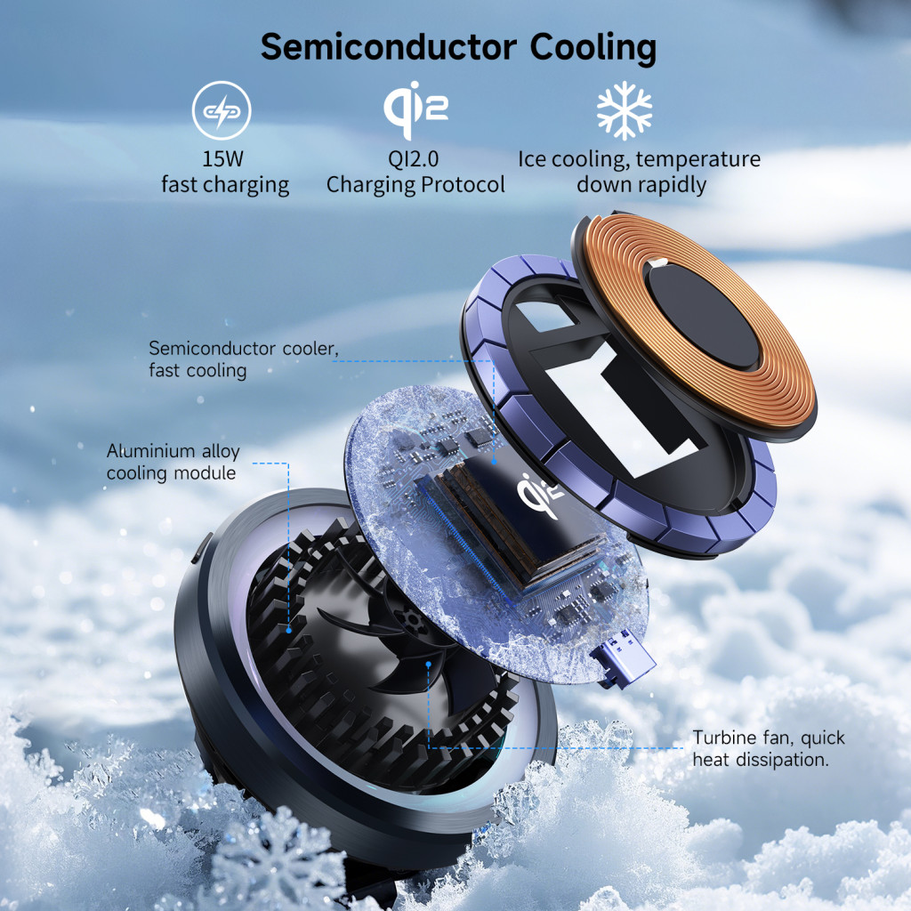 MagCold 11 15W MagSafe Qi2 iPhone mágneses autós gyorstöltő RGB világítással, beépített hűtőventillátorral