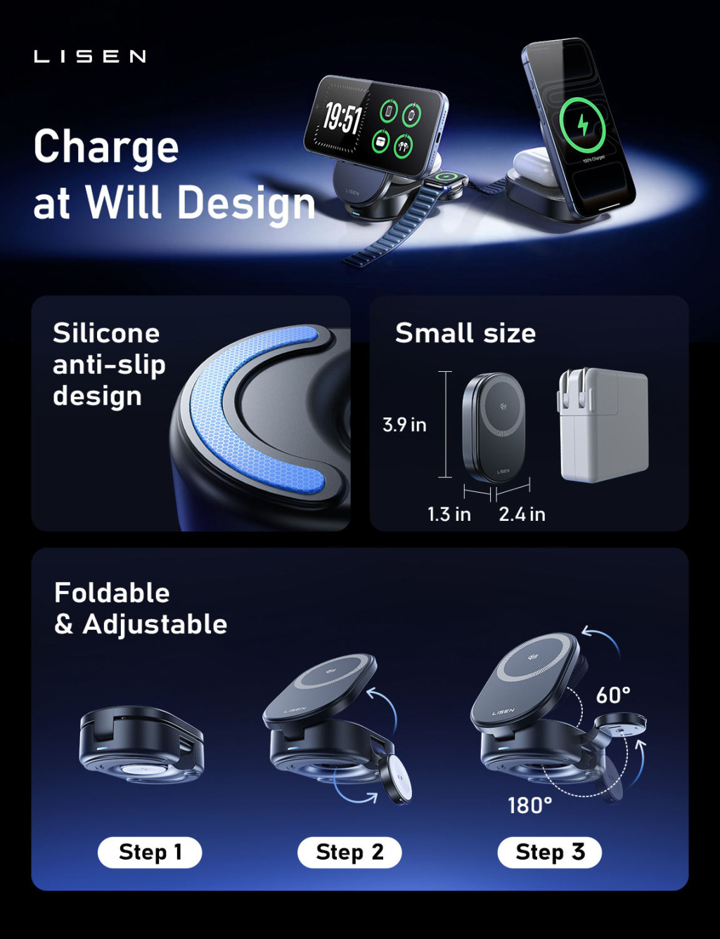 • 1× LISEN MagFold Pro 3-in-1 töltőállomás