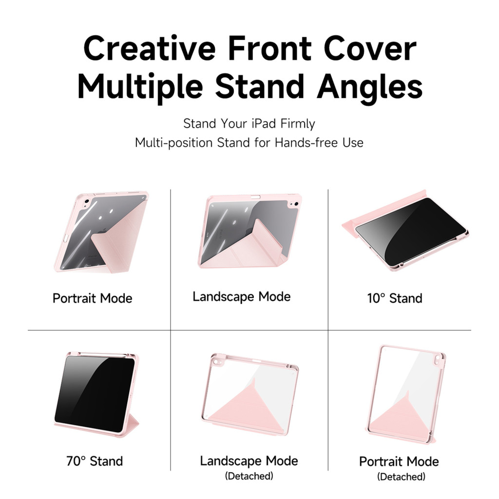 Az innovatív elülső borítás többféle állítható nézési szöget biztosít, így kényelmesen használhatod a táblagépet videónézéshez vagy böngészéshez. Az átlátszó hátlap levehető az előlapról, és önállóan is használható – ideális például játék közben.