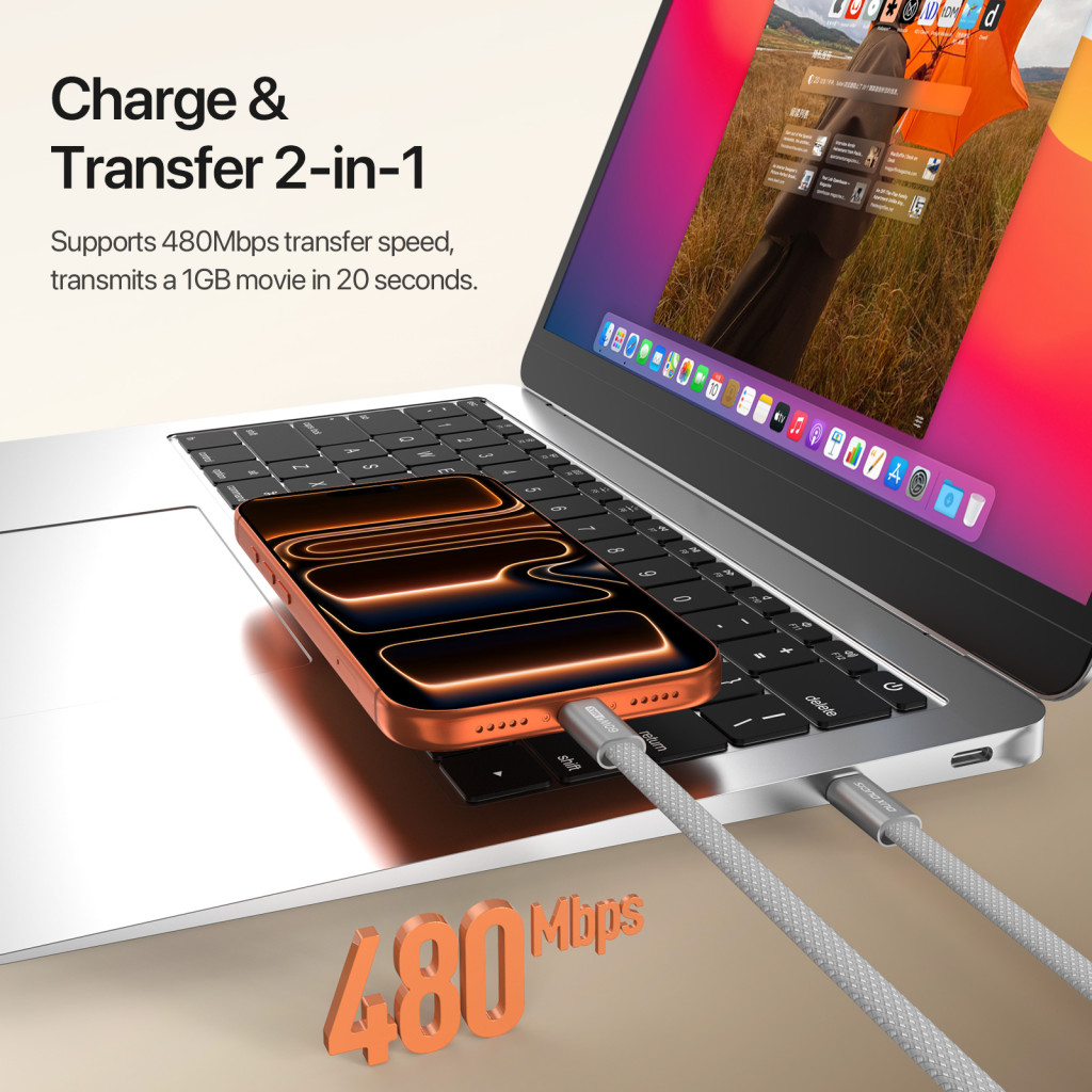A strapabíró, sűrű szövésű nylon fonott külső borítás ellenáll a mindennapi igénybevételnek, a hajlításnak és a kopásnak. A megerősített csatlakozók stabil kapcsolatot biztosítanak és csökkentik a törés kockázatát. A kábel nemcsak töltésre, hanem adatátvitelre is alkalmas, így egyetlen kiegészítővel megoldható a szinkronizálás és az energiaellátás.