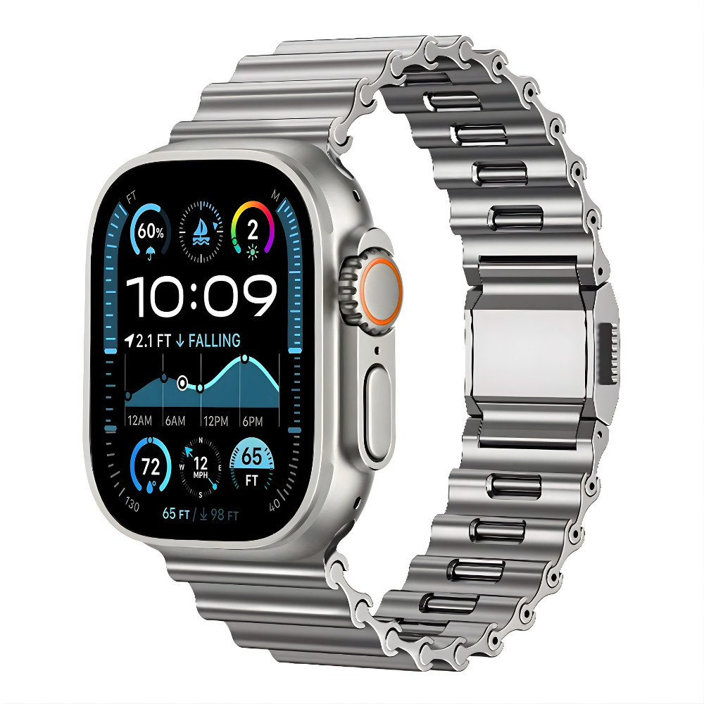 A Steel Wave fémszíj prémium megjelenést és stabil viseletet biztosít Apple Watch órádhoz. A mágneses csat kényelmes és biztonságos rögzítést nyújt, a méretre állításhoz pedig nincs szükség külön méretező eszközre: a szíj hátoldalán, a szemeken található gomb megnyomásával egyszerűen eltávolíthatók a szemek. A szíj teljes hossza 177 mm, súlya 77,8 g, így masszív, mégis elegáns választás a mindennapokra.