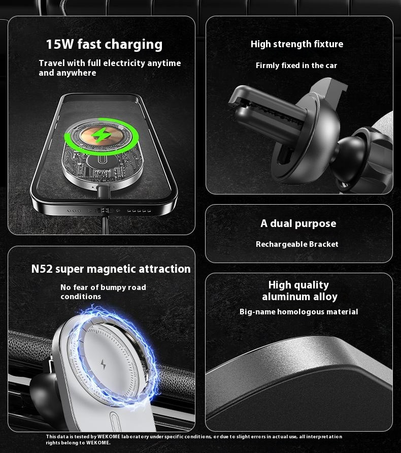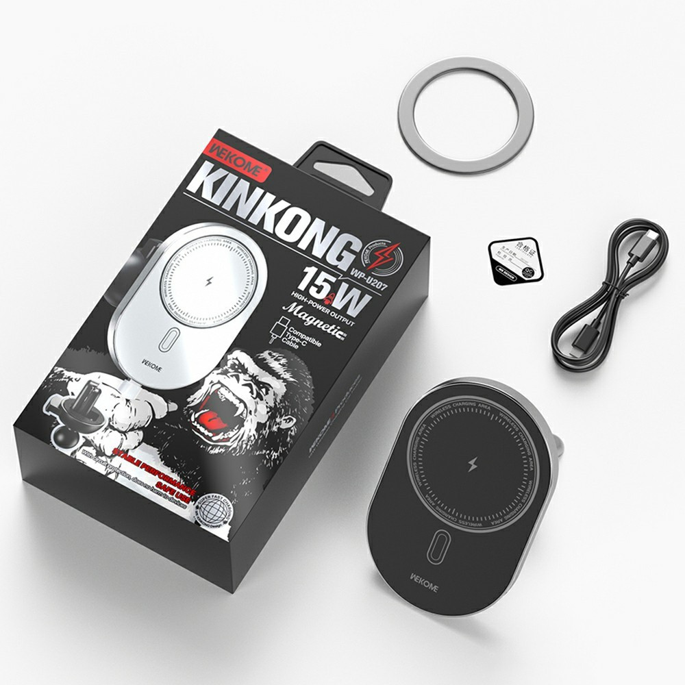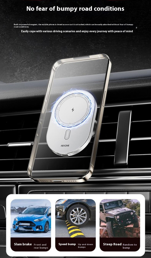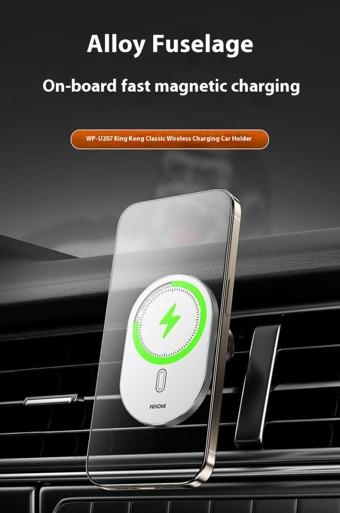 A WEKOME WP-U207 mágneses autós vezeték nélküli töltő stabil tartást és gyors töltést biztosít útközben. Tartós, prémium ötvözetből készült háza elegáns és hosszú élettartamú, a beépített N52-es erőmagnesz pedig biztonságosan rögzíti a telefont még egyenetlen úton is.