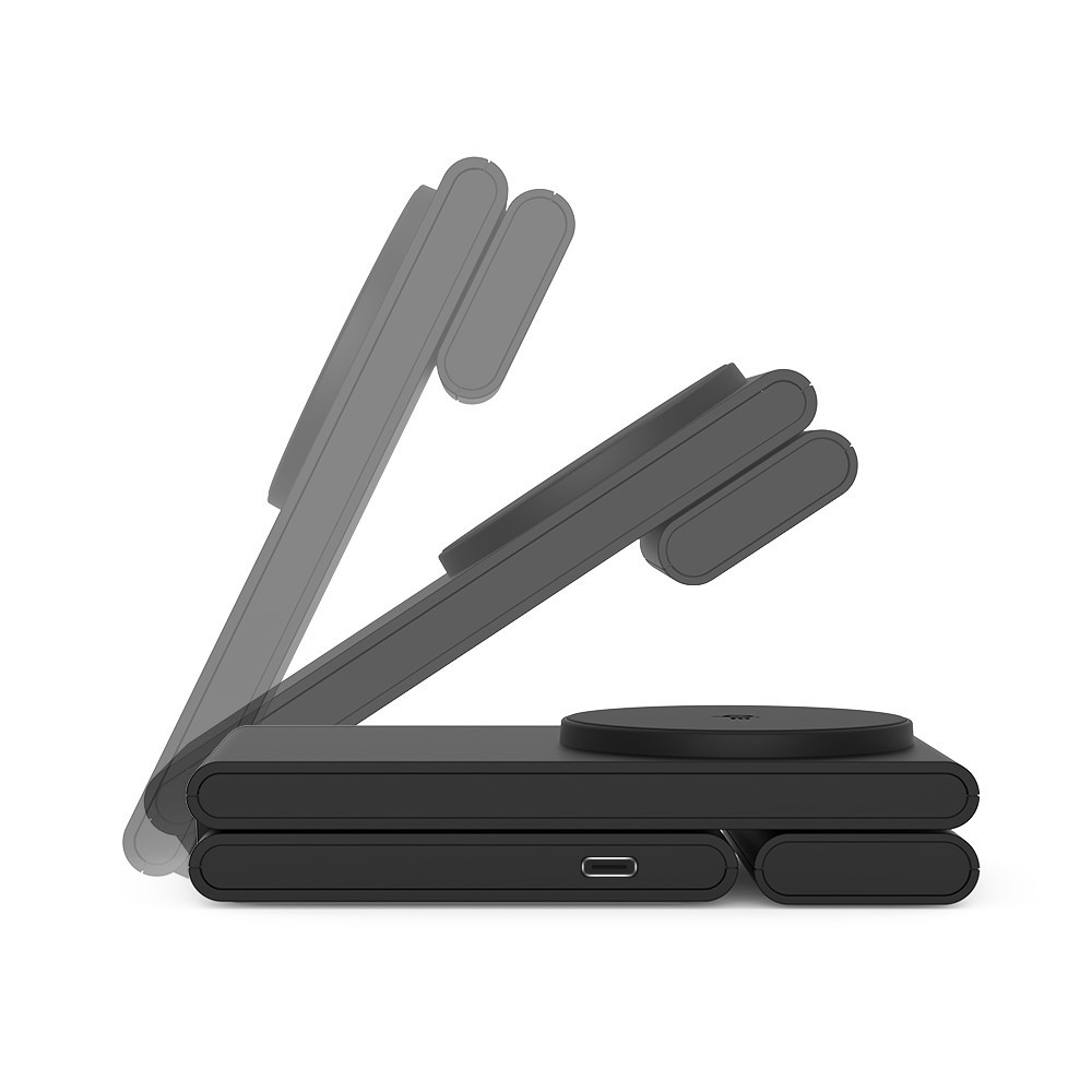 M5 Qi2 3 az 1-ben összecsukható mágneses vezeték nélküli töltőállomás iPhone / Apple Watch / AirPods – Fekete